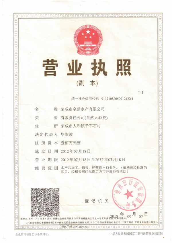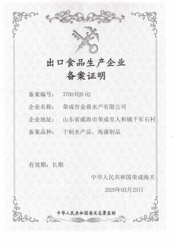 您好,歡迎訪問榮成市金鼎水產有限公司官方網站!